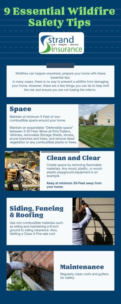 Taking these steps can significantly reduce the risk of wildfire damage to your home and personal property. If you have any questions or need further guidance, don’t hesitate to reach out to our agency. We’re here to help you protect what matters most!